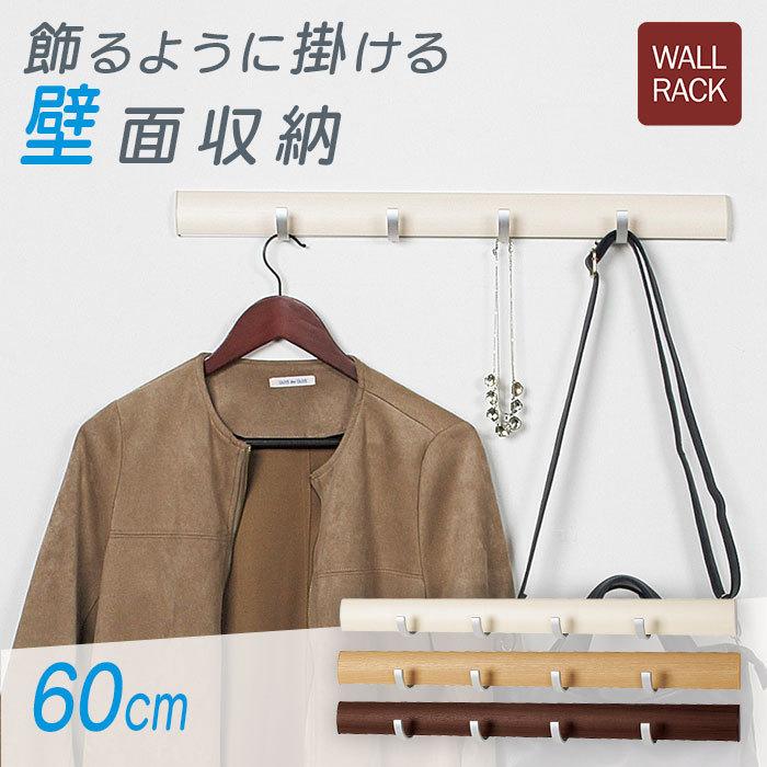 フック5個付 幅約2cmのものまで掛けられます 選べるアイボリー ナチュラル セピア ライン5連フック 80cm フック おしゃれ 壁に付けられる家具 石膏ボード用 ウォールハンガー 壁掛けハンガー 洋服掛け 壁 ハンガー 賃貸 壁掛けフック 帽子掛け コートハンガー